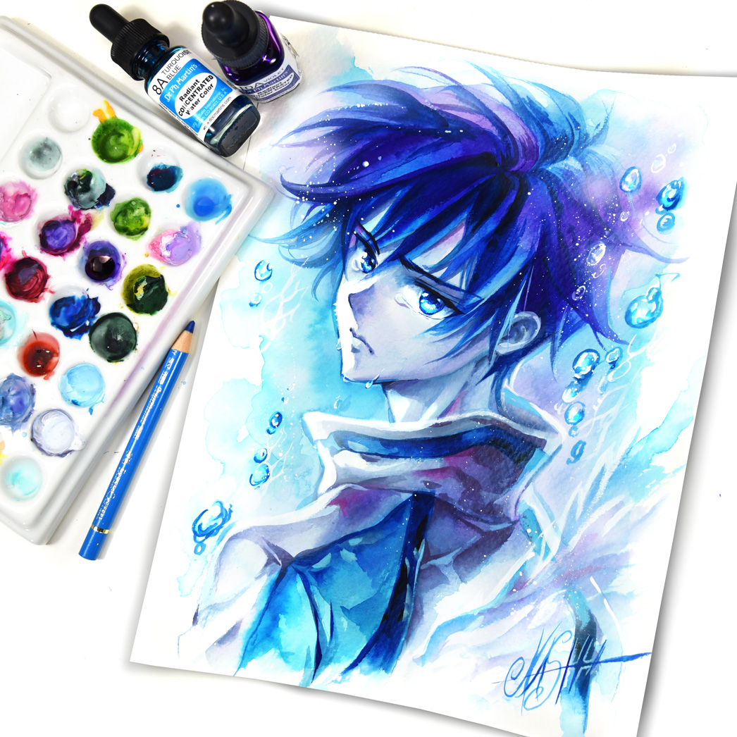 You can get this Original Blue Drawing on a Watercolor Paper Din A4 (21x 29,7cm / 8.26x11.41 inch)
