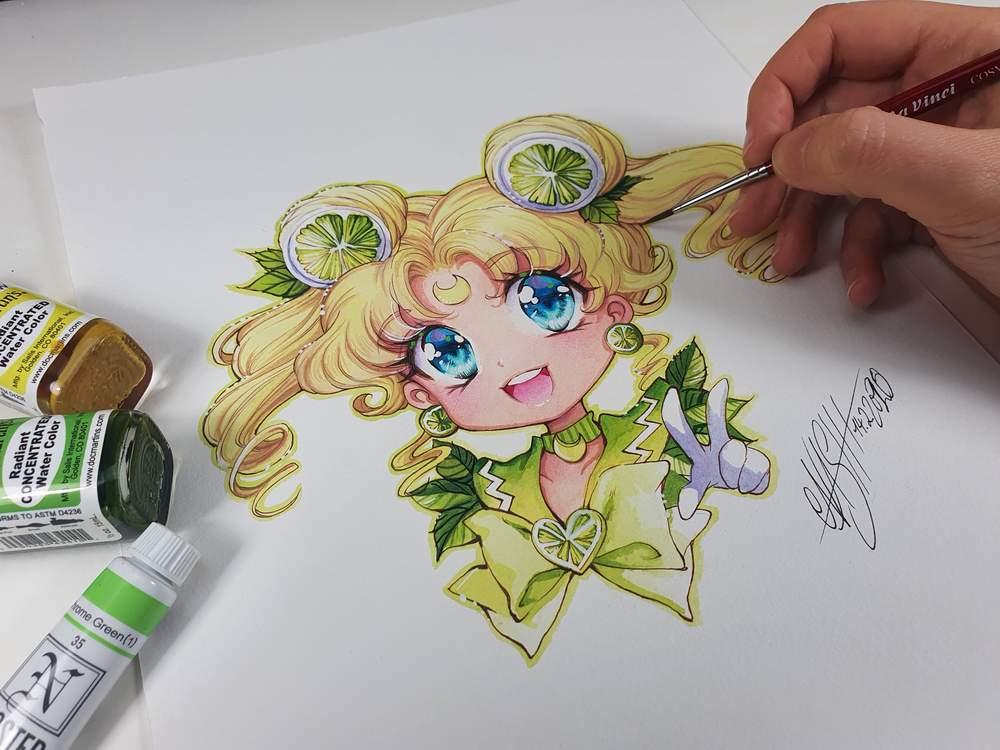 You can get this Original Drawing of Fruity Moon on a Watercolor Paper Din A4 (21x 29,7cm / 8.26x11.41 inch)