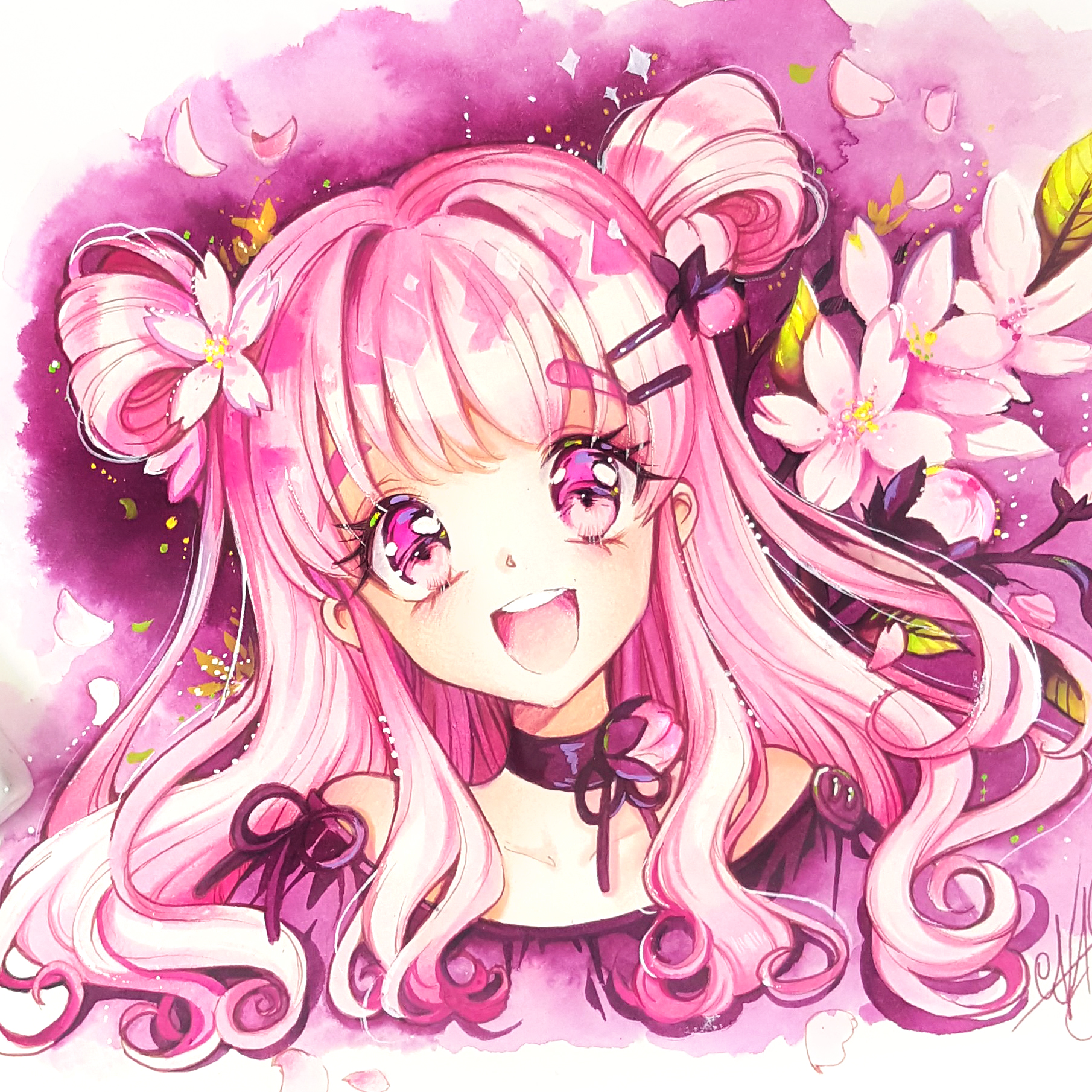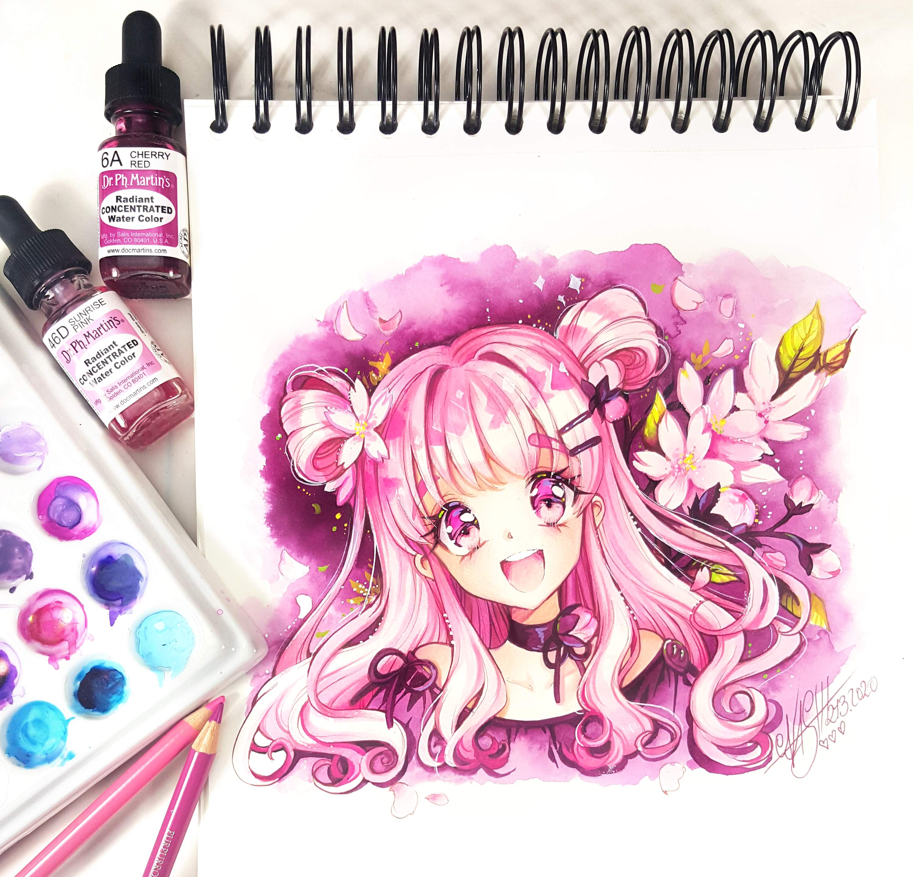 You can get this Original Drawing of Sakura Girl on a Watercolor Paper Din A4 (21x 29,7cm / 8.26x11.41 inch)